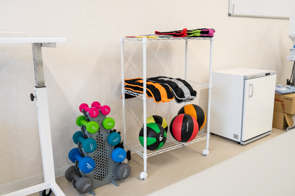 ダンベル・メディシンボール・アンクルウェイトなどの運動療法器具です。