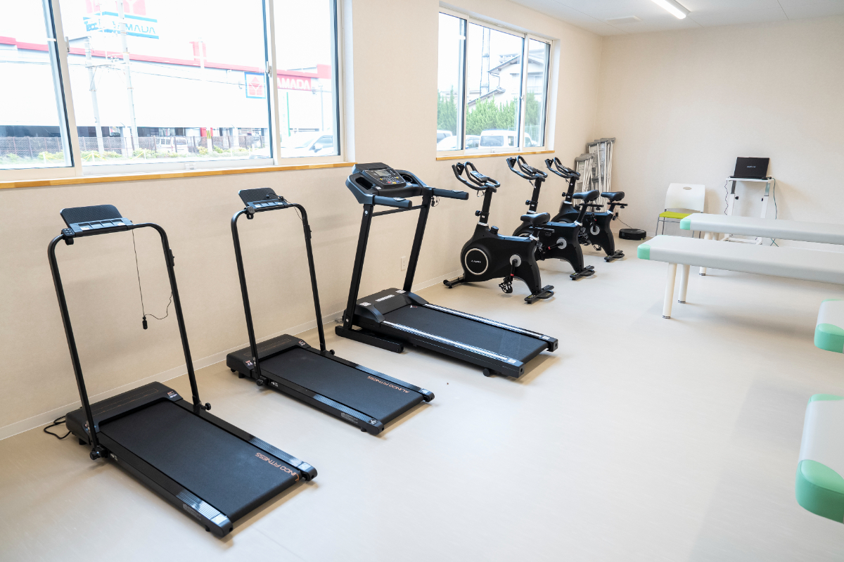 ほんだ整形外科では、広々としたリハビリルームに、さまざまな用途別に使える設備機材をご用意しています。